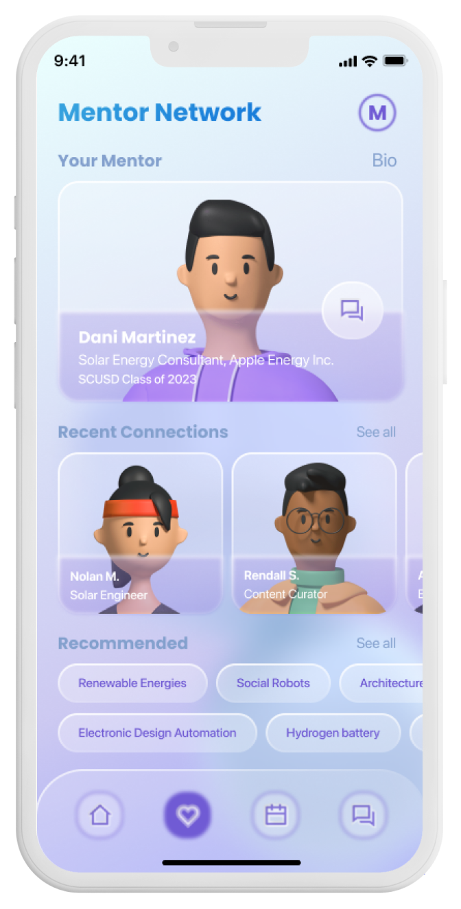 In collaboration with Carnegie Mellon University’s School of Design, Prospect Studio partnered with the Santa Clara Unified School District (SCUSD) to envision an equitable future for education. Many SCUSD students face social and economic disparities that limit access to opportunities and quality learning. As students often move away after graduation and opportunities outside school are limited, we created Compass, an open digital platform that supports self-agency and exploration through reflection, mentorship, and real-world experiences.