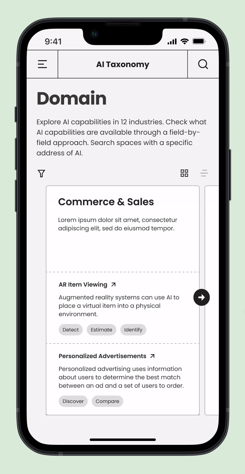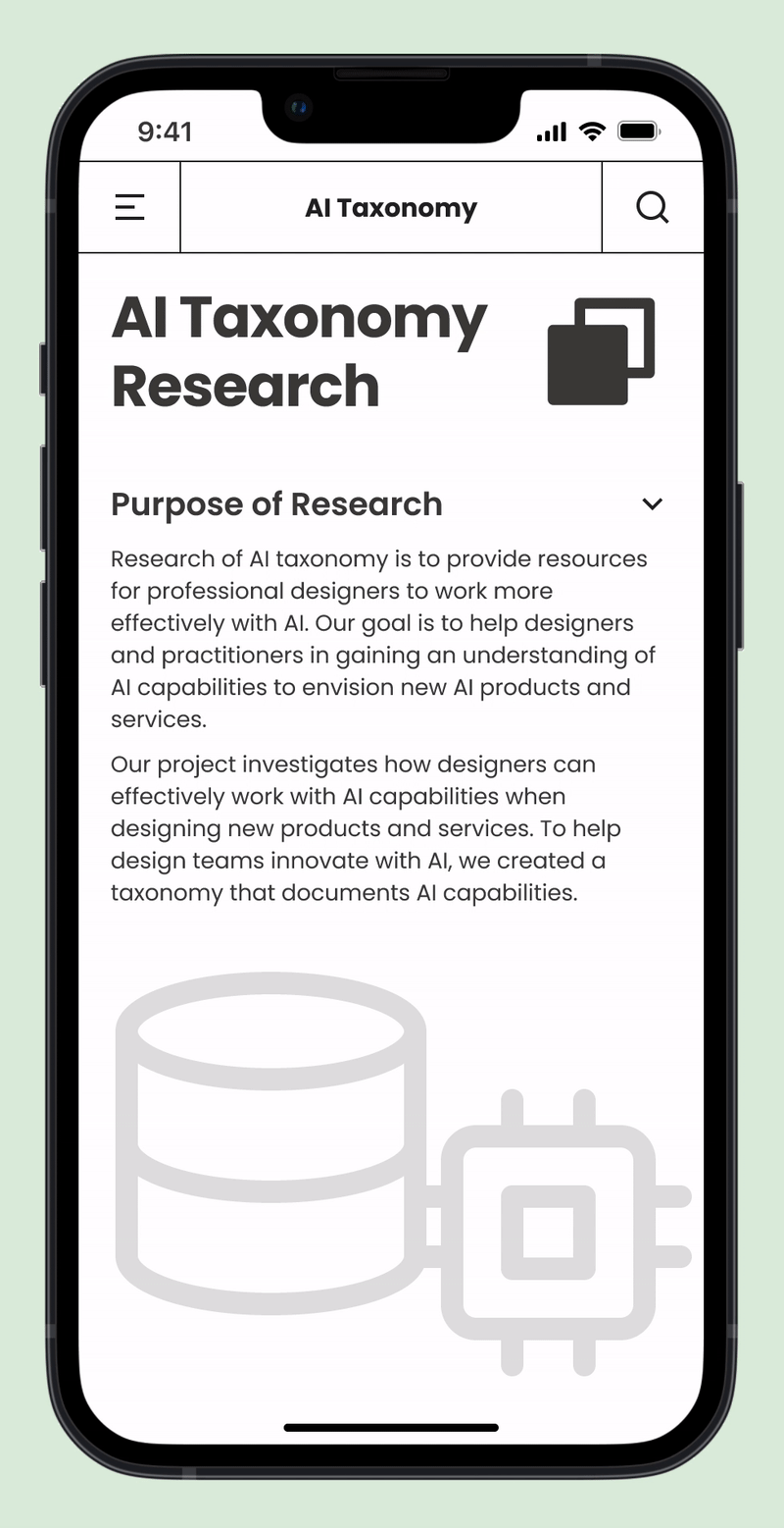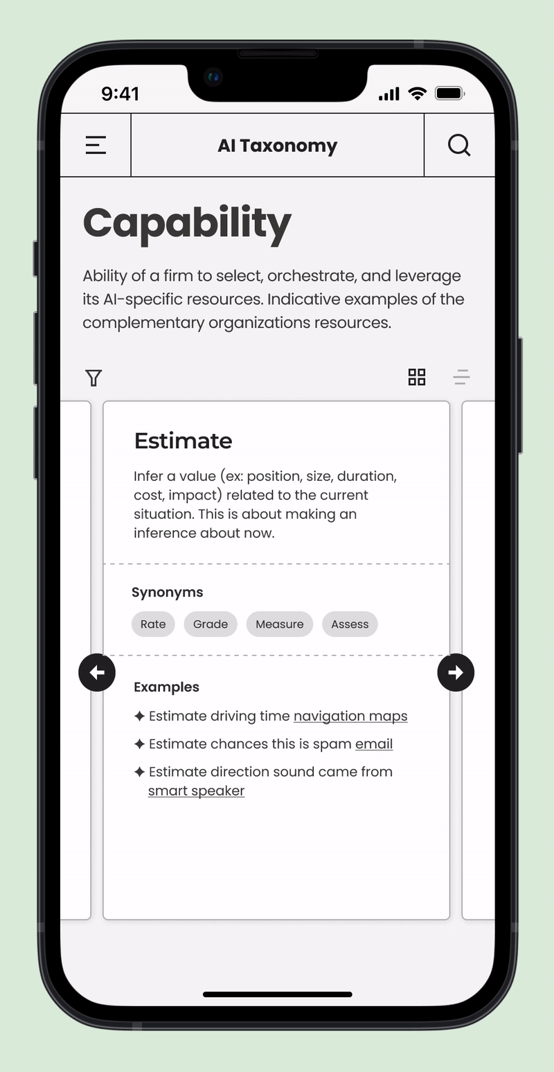 As AI becomes more prevalent in the industry, professionals without a technical background need resources that help them understand how to work productively with it. Many designers mistakenly view AI as a human-like system capable of holistic reasoning, when in reality, current technologies operate through narrower, modular processes. To address this, our team developed an AI capability taxonomy that breaks down what AI can realistically do today. We then designed an interactive website that helps designers explore these capabilities step by step, enabling them to recognize AI’s real potential, spark new ideas, and design innovative AI-driven products and services.